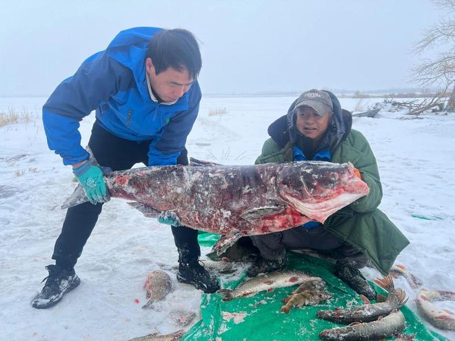 Шыңжаңның Алтай аймағы қысқы аулауда салмағы 35 килограмм «балық патшасын» аулады