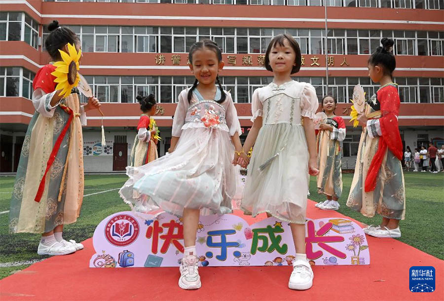 1 қыркүйекте Хэбэй өлкесінің Ханьдань қаласы, Ханьшань ауданындағы Хомо бастауыш мектебінің бірінші сынып оқушылары «кедергіден аттау» рәсімін өткізді.