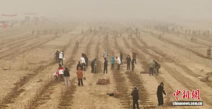 Шыңжаңның Куньюй қаласында құмды тізгіндеу үшін мыңдаған адам ағаш отырғызуға жұмылды