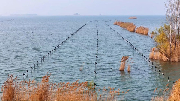 Мыңдаған су құзғыны көл үстінде сап түзеді