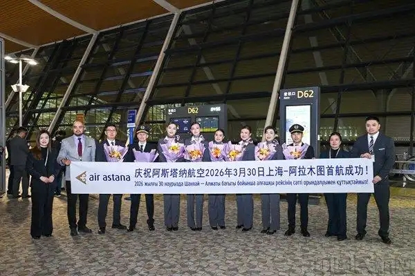 1 сәуір, онлайн «Халық Газеті» -- 30 наурыз күні Air Astana әуе компаниясының Алматыдан Шанхайға тікелей рейсі Шанхай Пудун халықаралық әуежайына қонды.